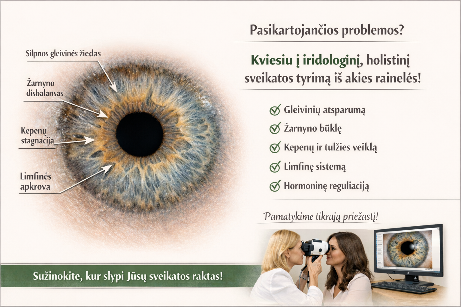 Iridoanalizės tyrimas nusako viso organizmo sveikatos būklę, kuri gali būti susijusi ir su jūsų sveikatos problema.